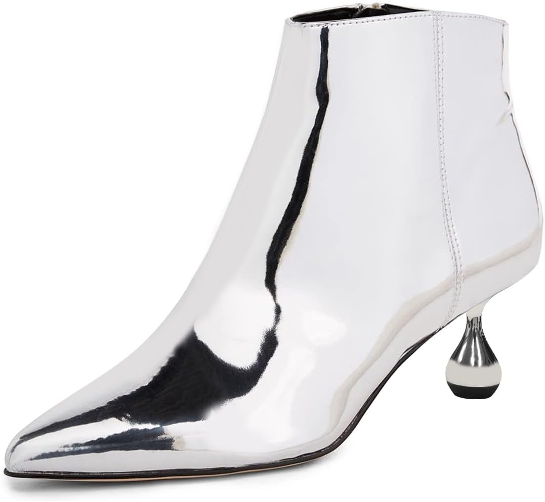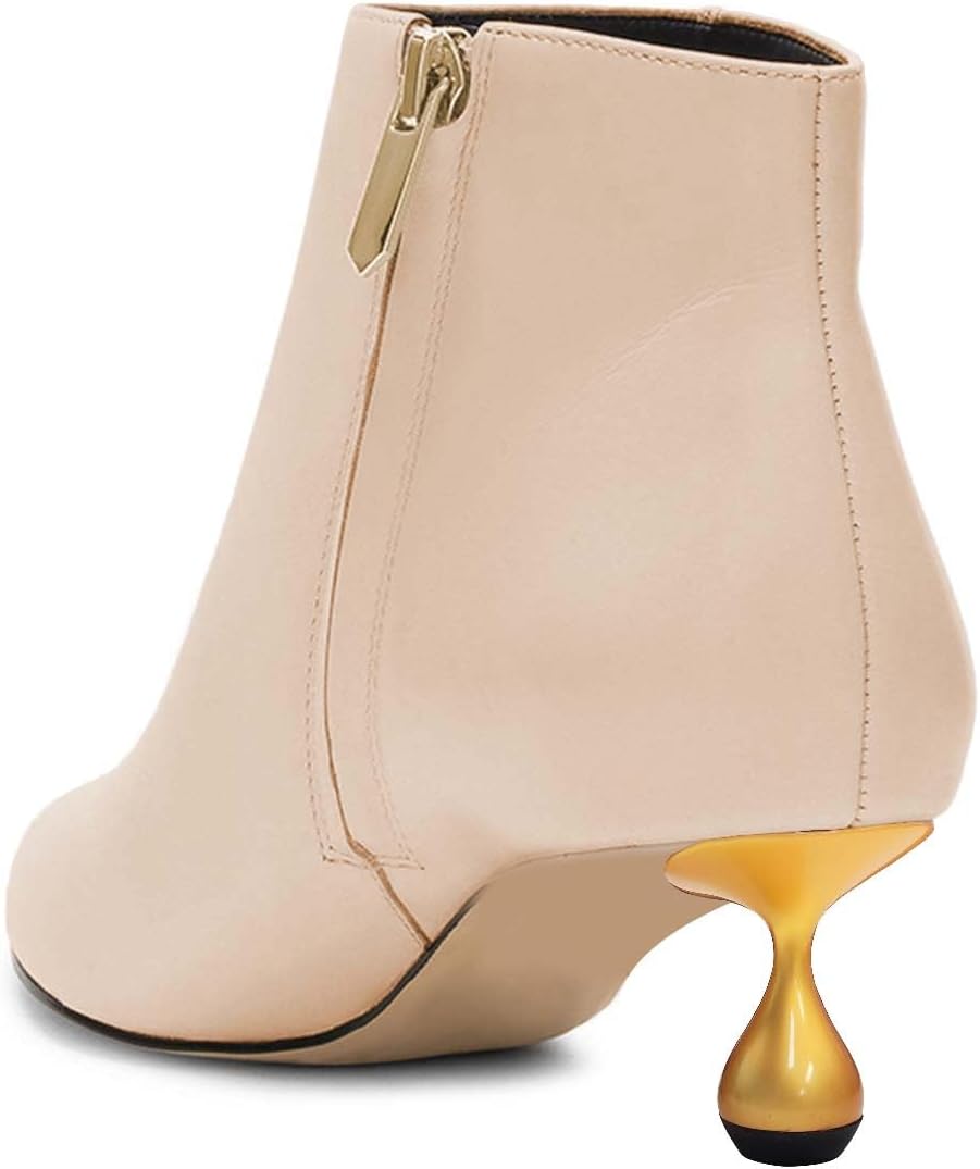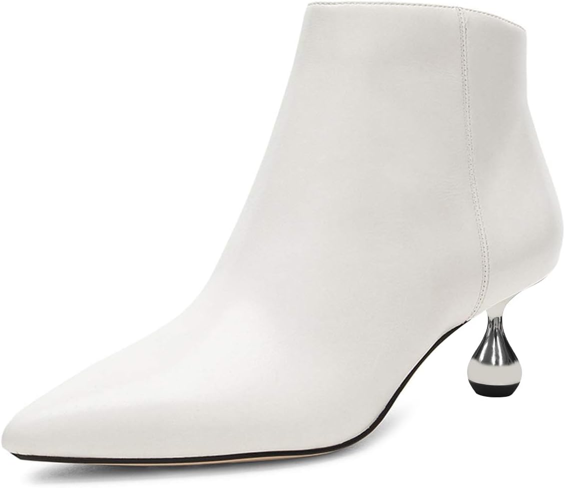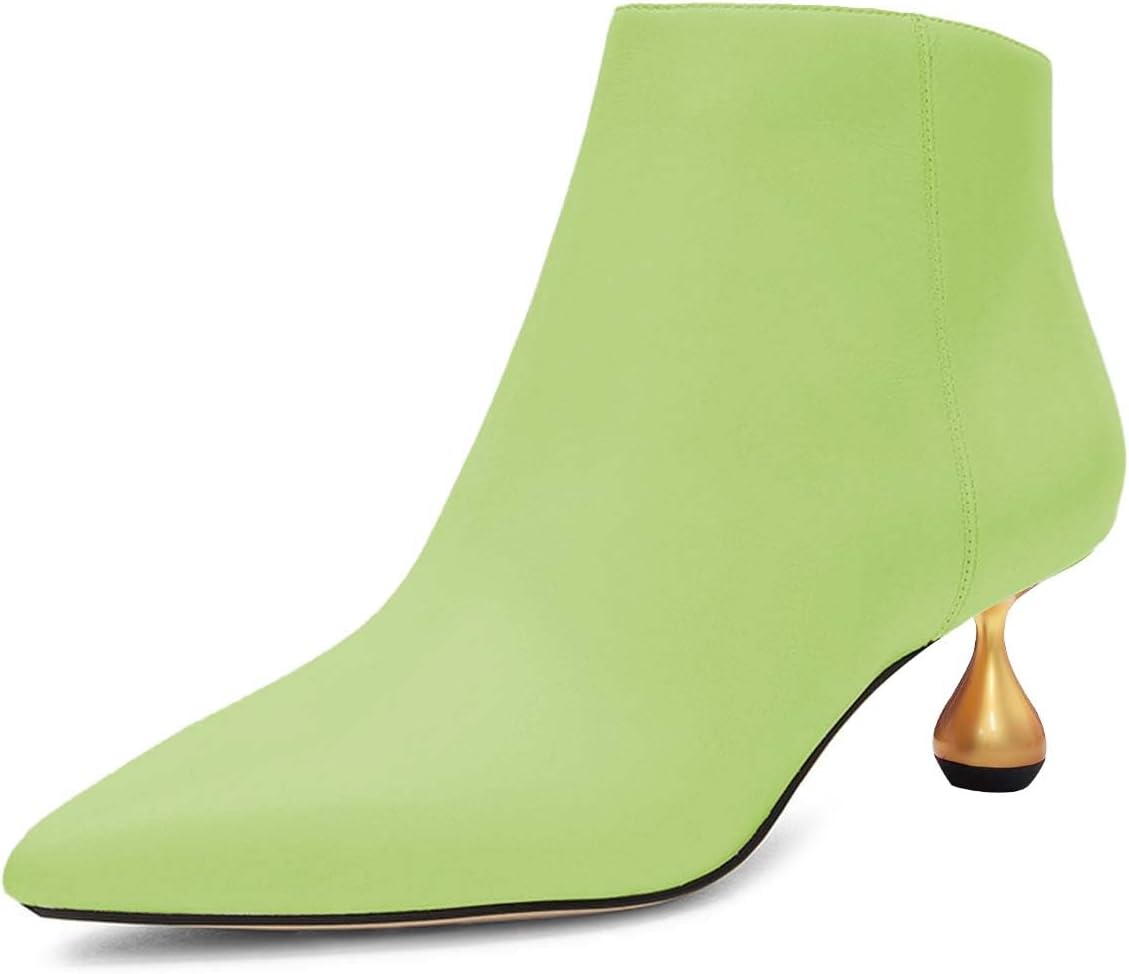 XYD - X Your Design BRAND INFORMATION XYD is a professional WOMEN'S SHOES brand that thinks highly of elegance and comfort. We aim at the latest stylish elements and help you stay with fashion trends closely. TOE STYLE: Pointed/Pointy/Closed Toe. HEEL HEIGHT: Low Heel/Metal Heel Style Style. 2.16 inches is the perfect height, which provides the right fit for your ankle and enough support to walk comfortably. It also boasts elegance and chic style. It is true to size. But if your feet are WIDE/THICK, please choose ONE SIZE UP. SHOE TYPE: Women's Cute Short Heel Ankle Boots with Zip provide a trendy look. Elegant designs with Anti-skip, Rubber outsole, and Padded insole with strict handmade craftsmanship provide better comfort and are ideal for all-day wearing. DRESSY MATCH: Perfectly paired with dresses, skirts, shorts, denim, an A-line mini skirt, or flared jeans. The shoes are a surefire way to top off any outfit. They are an essential part of your gorgeous shoe closet. TAILORED FOR YOU You can customize the material you prefer, heel height (platform height), color, your foot length/width, and the best to have a picture. Once the customization has been confirmed, we will start making your dream shoes.