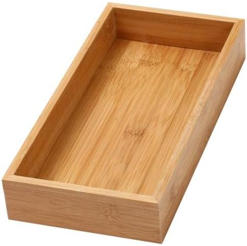 Tackle the never-ending clutter in your office desk and kitchen drawer with this attractive bamboo storage box organizerAdd a Natural Touch to Your Home OrganizationThis environmentally friendly bamboo drawer organizer box is attractive and functional to meet your drawer organization necessities. Made of high quality Moso bamboo, this drawer organizer box is sturdy and versatile to organize various small items inside the drawers around your house.It is perfect to use in your office desk drawer to keep pencils, scissors, paper clips, and erasers organized. Try it in your kitchen drawers to organize notes, reminders, wine stoppers, corn holders, and other kitchen gadgets, or in your bathroom vanity drawers to keep makeup brushes, lipsticks, eye pencils, contour palettes, cream bottles, lip pencils, and jewelry like rings and necklaces neat and tidy. Crafters will also find this useful for organizing their crafting supplies, paint brushes, and scrap booking supplies.DimensionsMeasures 10 in. Width x 14 in. Length x 2 in. Height