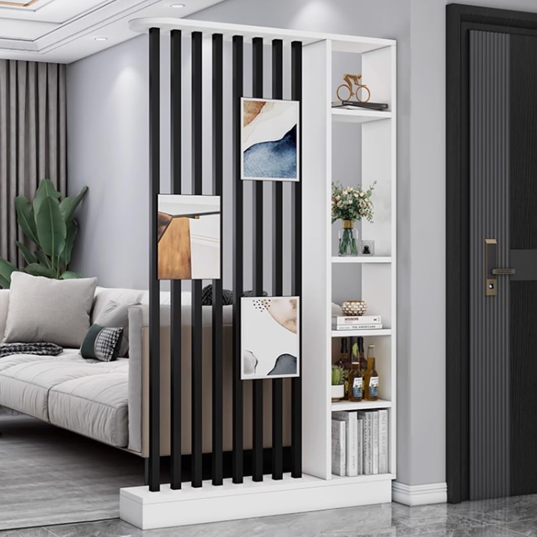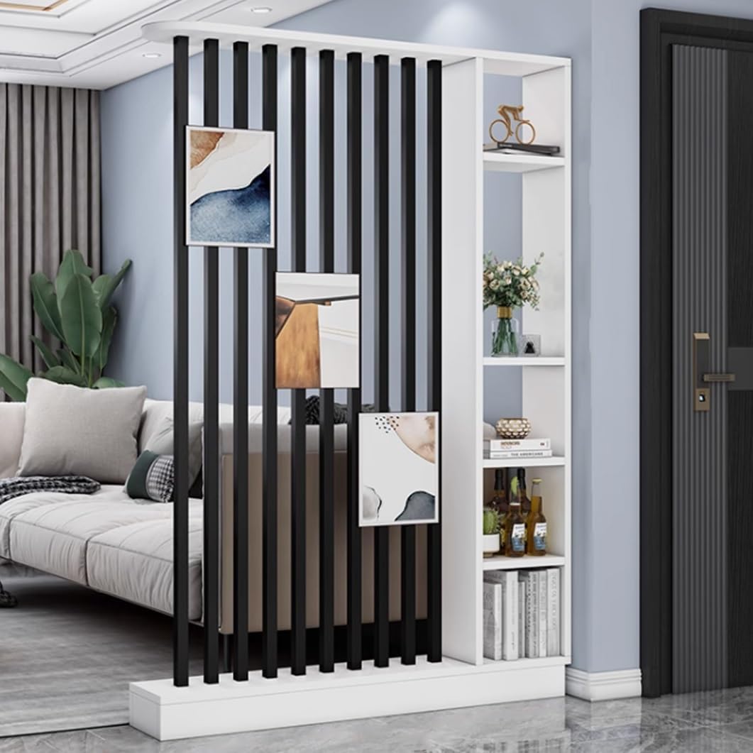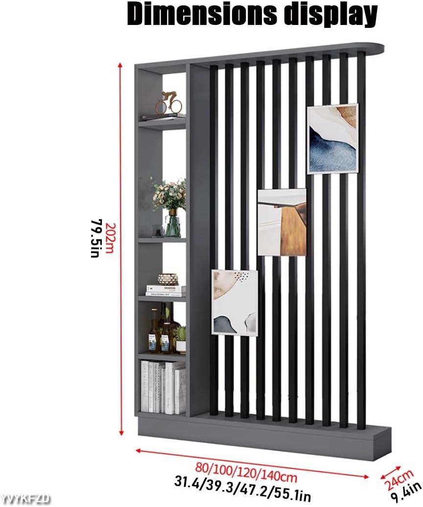 Thank you for visiting YVYKFZD store:* The wall screen partition post effectively blocks certain areas, providing privacy protection. Its clever design allows flexible space division, preventing visual intrusion and ensuring your personal space remains undisturbed* The room partition column offers practical functionality while adding a unique decorative effect to the space. It can serve as a visual focal point, bringing layers and personalized charm to the interior environment through various designs and stylesSpecifications:- Product Name: Minimalist room divider screen / DIY modern screen partition cabinet / room divider shelf / office divider / room divider shelves / shelf room divider / wall divider with shelves- Material: MDF + carbon steel- Assembly Required: Yes- Length Options: 80cm/31.4in, 100cm/39.3in, 120cm/47.2in, 140cm/55.1in- Height: 202cm/79.5in- Width: 24cm/9.4inNote:1. Due to manual measurement, there may be a difference of 1-3 cm2. Colors may vary due to computer resolution, please refer to the actual product received3. Only the shelf is included, not any decorations