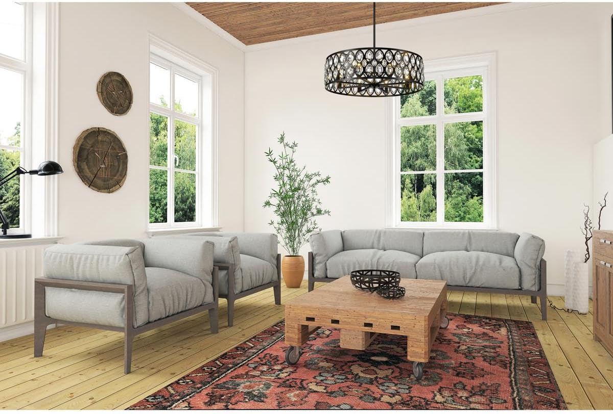 From the Dealey collection comes this elegant, wide eight-light chandelier. Featuring a dazzling ellipse-carved steel shade, which surrounds each of the eight candelabras, this chandelier lends a striking contrast with a blend of its dark matte black finish and glimmering clear crystal pendants. Cast a warm glow and illumination over a dining table or contemporary living room while adding a touch of glamour.