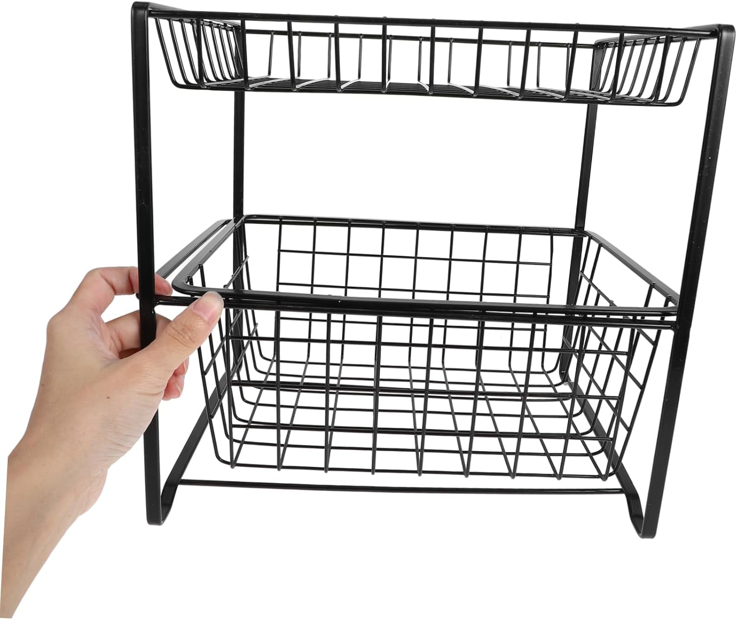 Package Include 1 x storage rack Characteristics -Easy installation: you can quickly and effortlessly set up this organizer in any undersink or cabinet space kitchen sink organizer -Color:Black under counter storage organizer -Material:Iron kitchen sink storage -Multifunctional use: ideal for storing a wide range of items, including cleaning supplies, toiletries, and kitchen tools, this organizer is perfect for use in various rooms of home under sink shelf organizer -Iron: this under sink organizer is built to last, providing a storage solution for your home under the sink organizer bathroom -Size:28.00X28.00X23.30cm/11.00X11.00X9.16in bathroom under sink organizer -Userfriendly design: ensuring easy access to your stored items without any hassle storage under sink -Optimized storage space: the design maximizes storage capacity, allowing you to keep your kitchen or bathroom essentials neatly organized and easily accessible bathroom under sink organizers and storageGoods Informationunder sink organizer With its shelving, you can easily categorize and store your items, maintaining a clean and organized environment.bathroom shelves The design allows for efficient use of space, making it suitable for both kitchen and bathroom storage needs.bathroom cabinet organizer This under-sink organizer is crafted from sturdy iron, ensuring durability and reliability