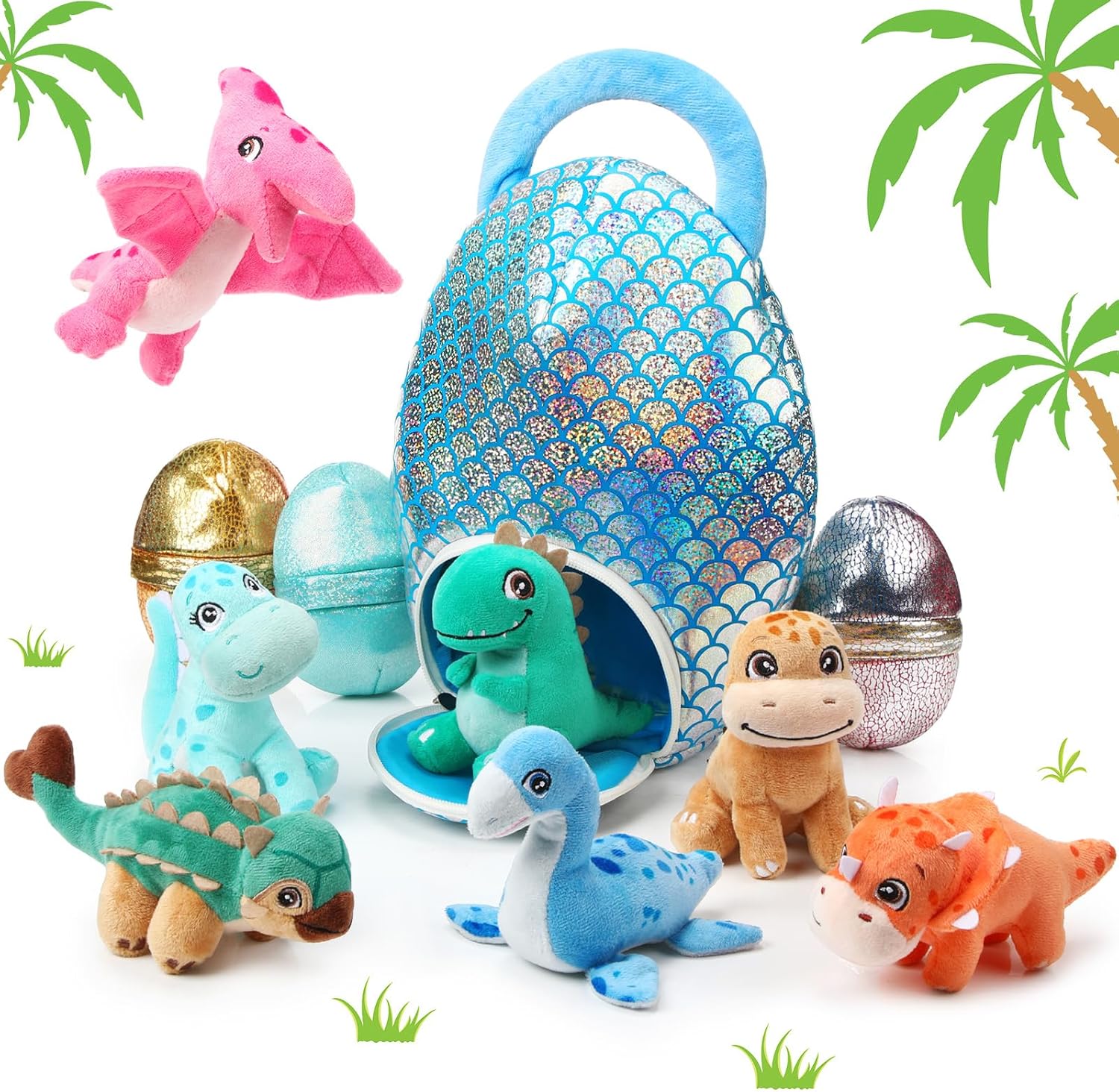 | Additional Features | dinosaur egg pack design, set of 11 dinosaur plush toys, soft, colorfast, and odorless plush material |