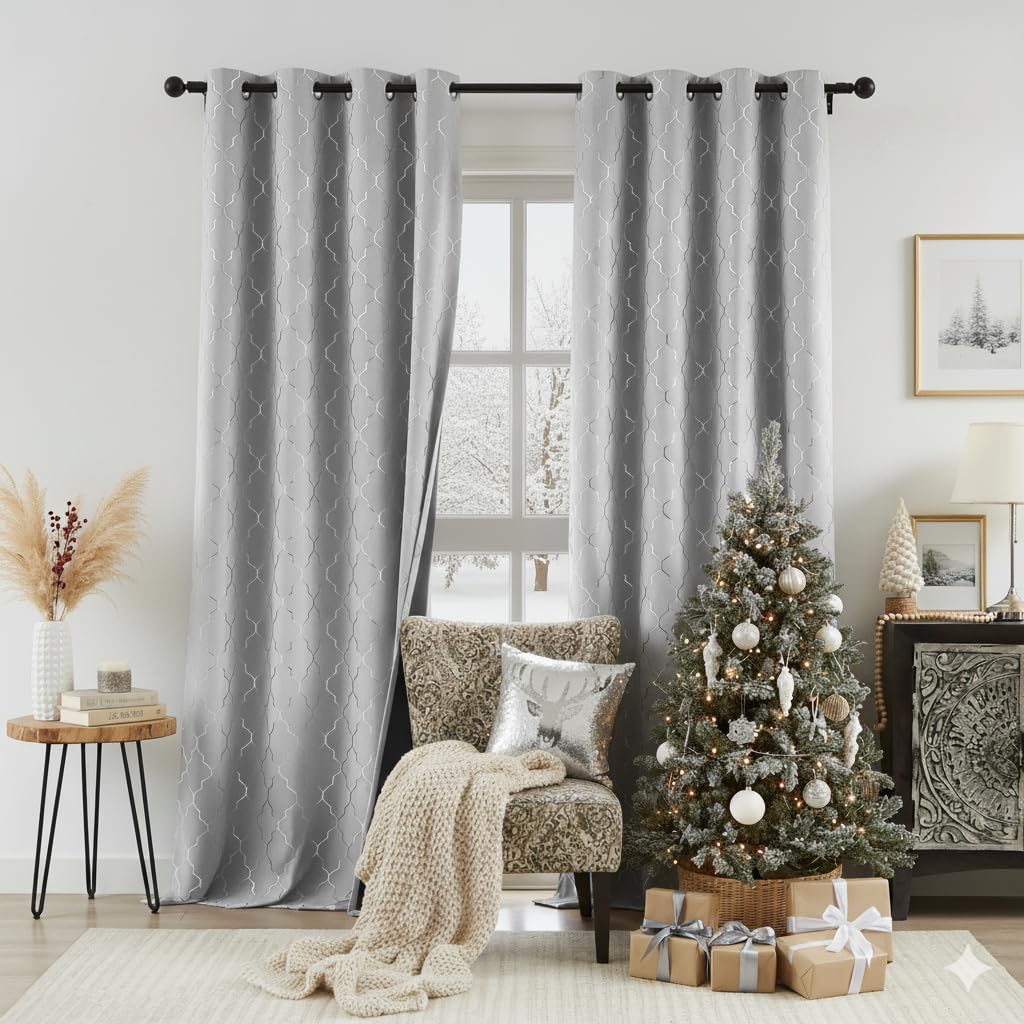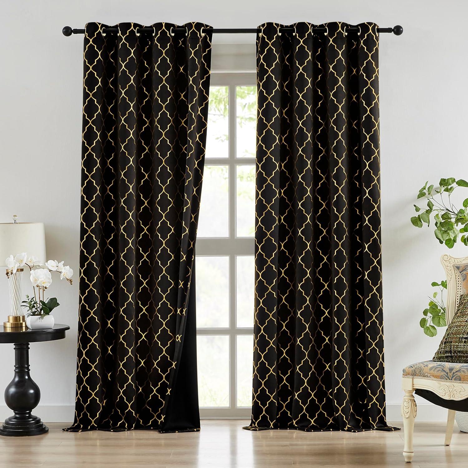| Theme | Geo Moroccan Metallic Print Full Blackout Window Curtains |