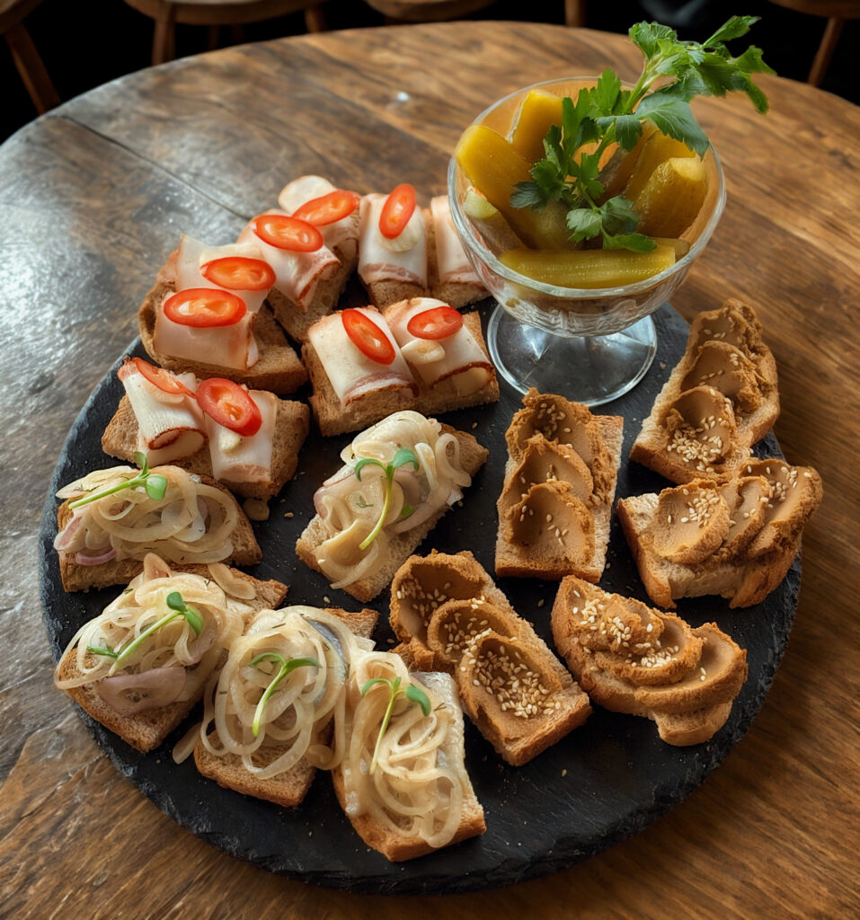 Сет закусокГрінка з пшеничного хліба з оселедцем, сало, паштет печінковий, огірок квашений.Ціна: 245 ₴“Сет закусок”додано до кошика.Переглянути кошикВиникла помилка. Будь-ласка спробуйте пізніше.Додати в КошикОформлення замовленняРозмір порції600Вам також може сподобатисяСвіжі овочі з горіховою заправкоюПаштет печінковийМ’ясна тарілкаTвітнутиПоділитисяПоділитисяPin0 Поділись