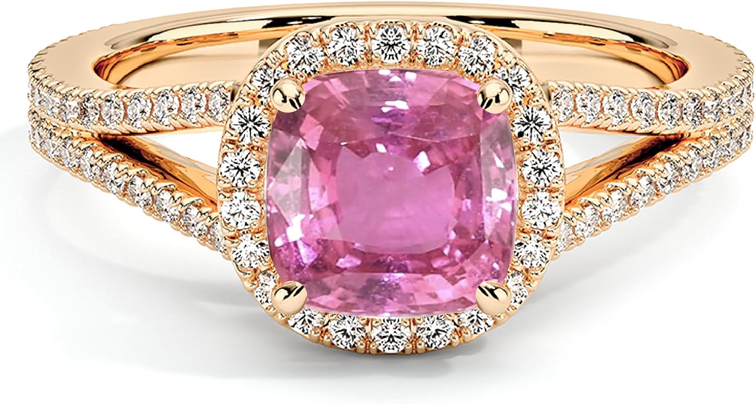 This Handmade Cushion Shape Halo Engagement Ring Is made from high-quality 925 sterling silver, known for its lustrous apCushionance and durability.. It is available in 14K White, Yellow, and Rose Gold Plating with Highly Glossy Finished. It features Simulated Cushion Cut Pink Sapphire & White Diamond Stone set in prong Setting. The Anniversary Wedding Matching Ring is easy to use, Perfect for any occasion.