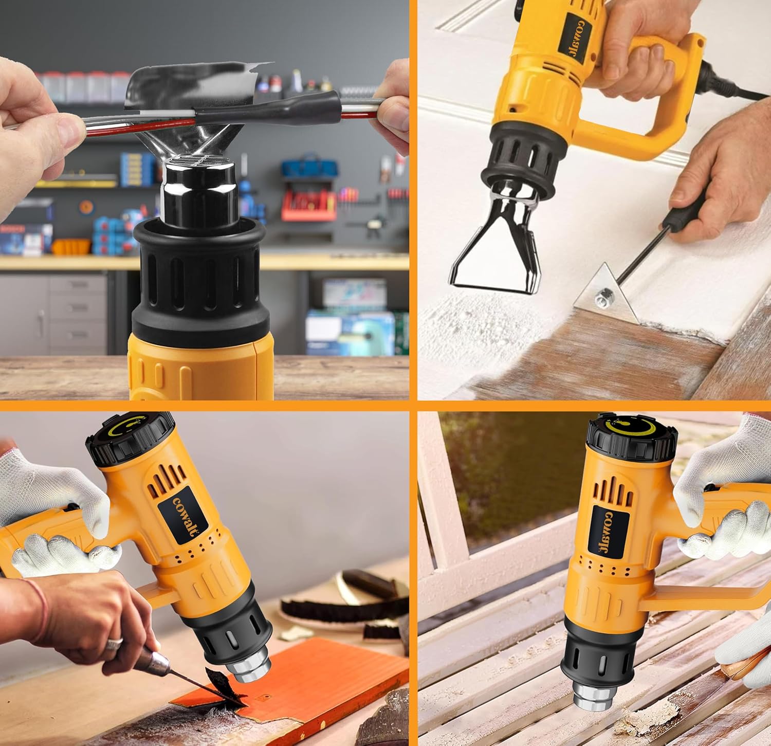 Get ready to tackle a wide range of crafting, DIY, and professional tasks with the COWALT 1800W Heat Gun & 60W Hot Glue Gun Bundle. This ultimate kit is designed for users who need powerful, fast-heating tools to achieve high-quality results across multiple applications. The 1800W heat gun features adjustable temperature settings, making it perfect for tasks such as vinyl wrapping, shrink tubing, paint removal, and epoxy resin work. With its overload protection and versatile nozzles, this heat gun ensures even heat distribution, protecting your materials and ensuring smooth, professional outcomes. The 60W hot glue gun heats up quickly to 300°F, providing a strong bond for crafting, repairs, and educational projects. Its lightweight, full-size design, coupled with a high-quality brass nozzle, ensures smooth glue flow and prevents dripping, extending the tool’s lifespan. It also includes 22 glue sticks, so you can start working on your projects right out of the box. Whether you’re a professional or a DIY enthusiast, this versatile bundle offers everything you need to handle projects efficiently and effortlessly. The ergonomic design of both tools minimizes user fatigue, even during prolonged use, while their robust construction ensures durability for long-term use. Save time and money with this all-in-one kit, perfect for anyone seeking professional-level results across a range of applications