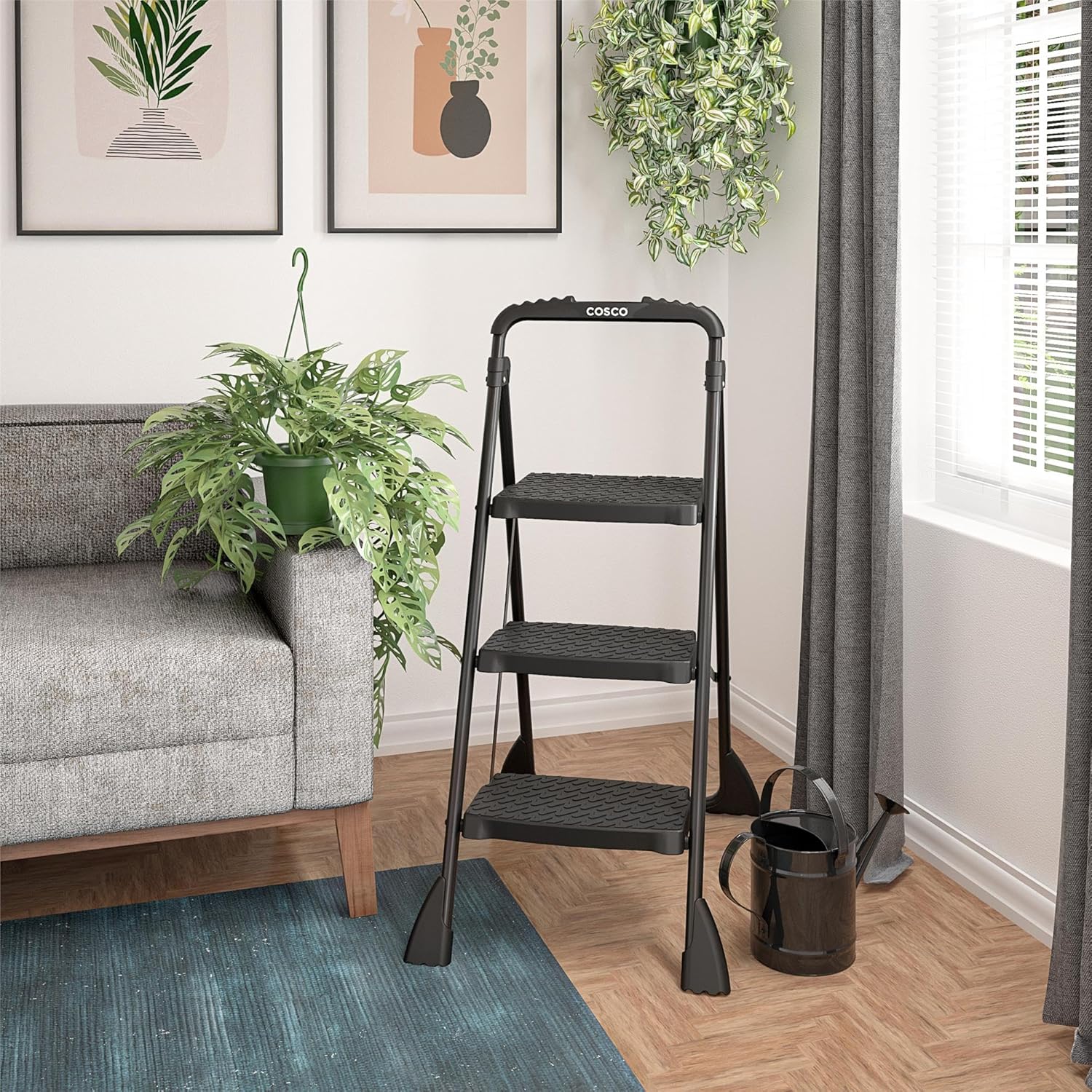 Looking for your newest multi-purpose step stool? COSCO has the ladder for you! This all steel, all black, step stool with project tray is perfect for all your indoor DIY projects. This is the ideal ladder for a variety of household projects from simple replacement of light bulbs to complete room makeovers. If you are a DIY Hobbyist, we highly recommend this ladder for all your project needs. Weighing in less than 20 lbs, it is effortless to move from room to room.