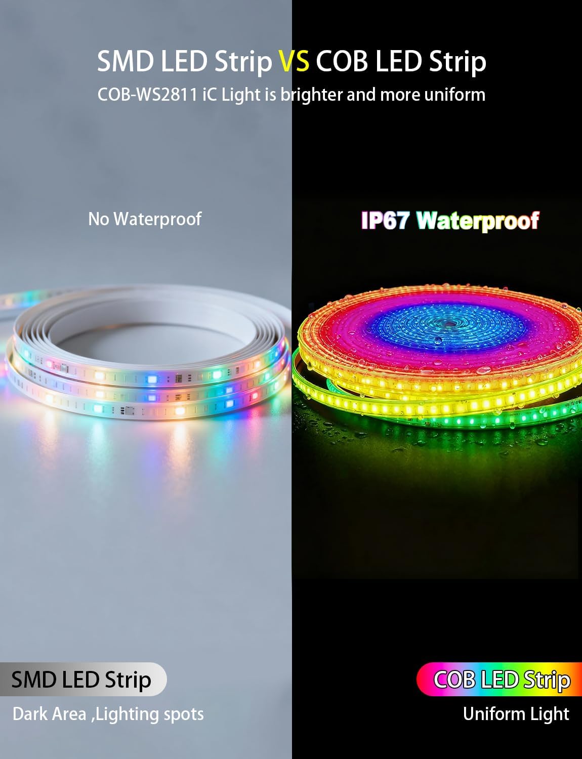 | Included Components | 40ft IP67 Watrproof RGB IC COB led lights |