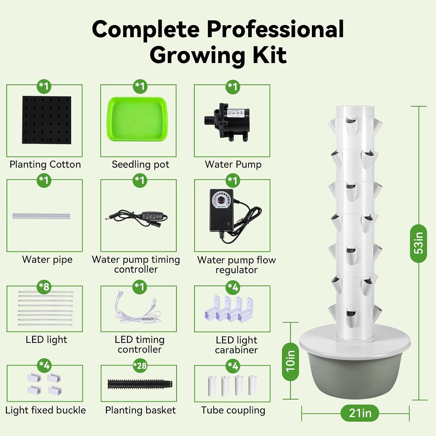 BAOSHISHAN 7-Layer Hydroponic Tower Growing System + 250 PCS Hydroponic Pods Kit (50 Grow Baskets, 200 Sponges)