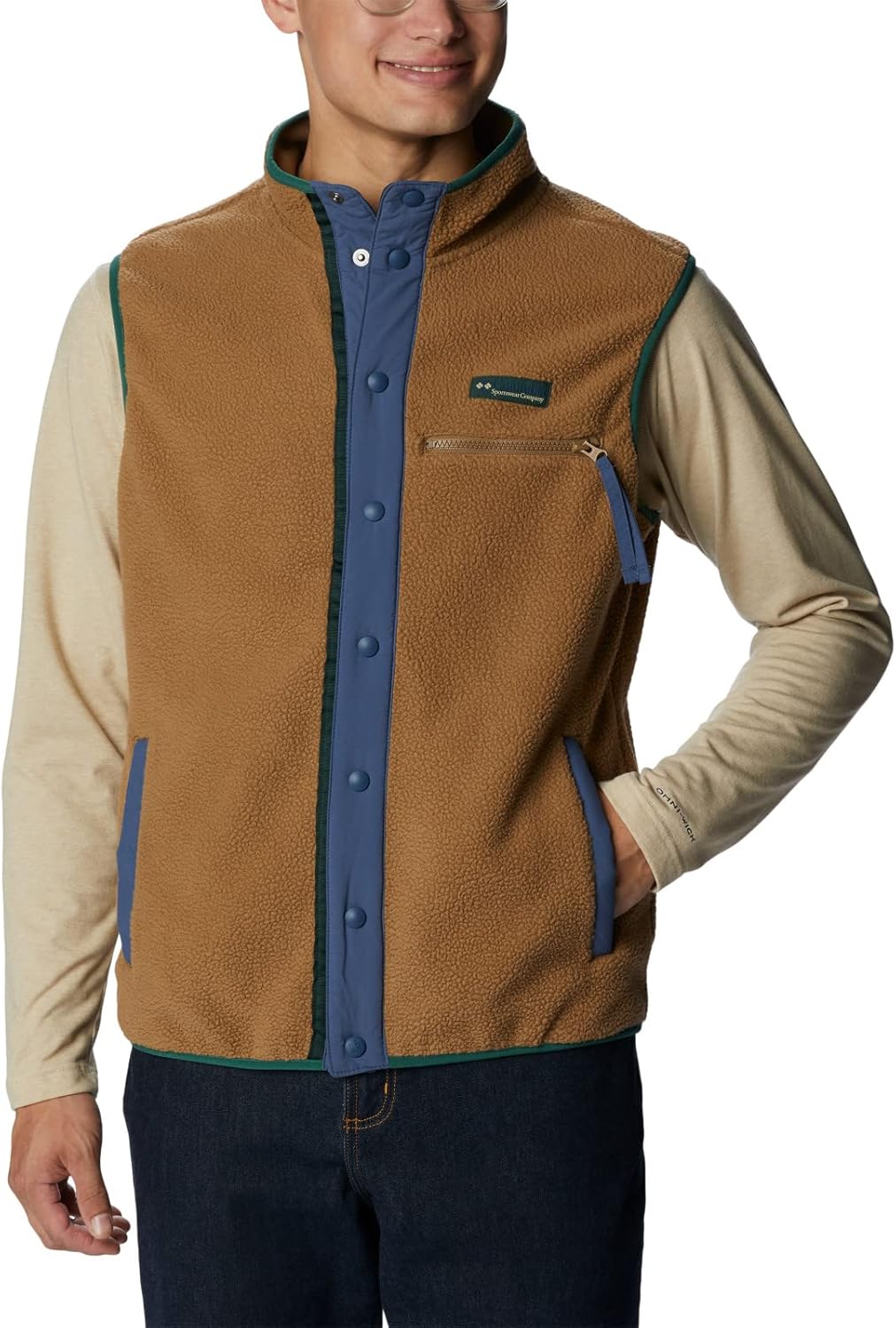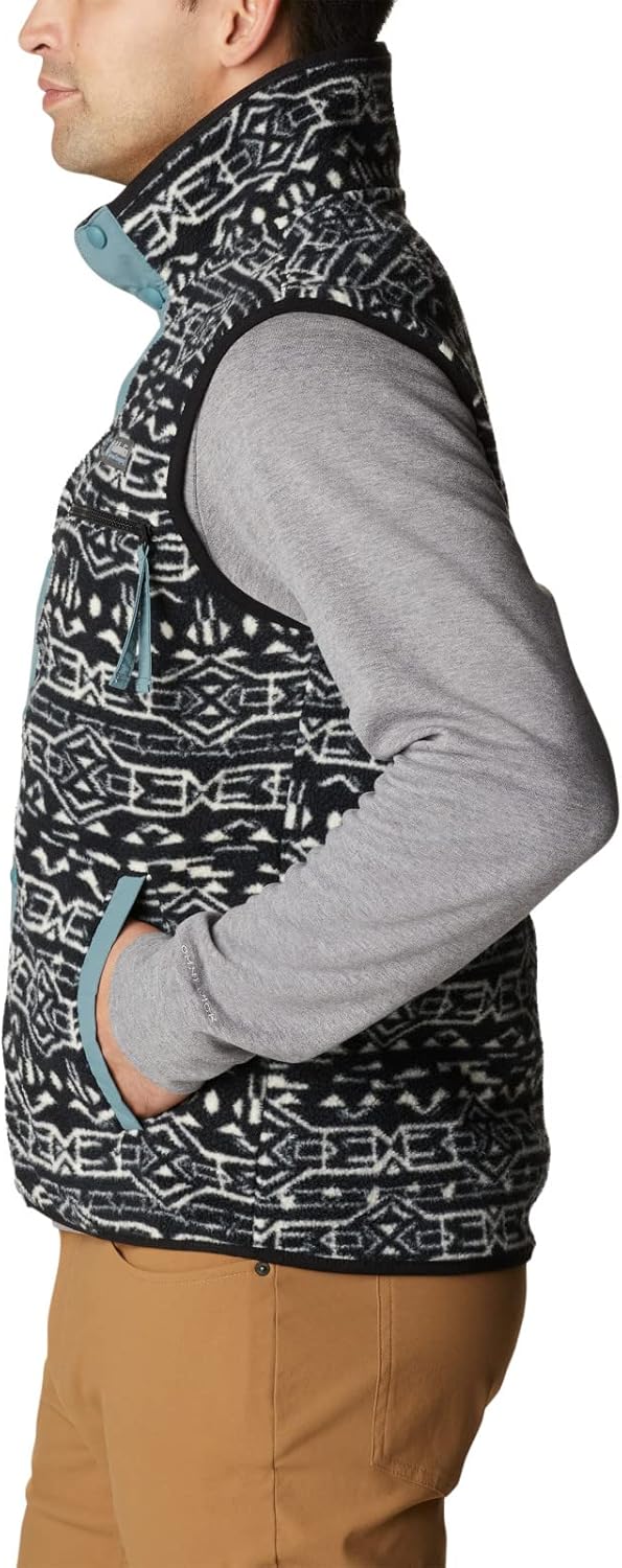 Made from super soft sherpa fleece, this vest is cozy and cool all at once. Elastic at the waist helps seal out the cold, while hand pockets provide added warmth and storage. Columbia offers this vest in multiple colors and sizes. Regular fit.