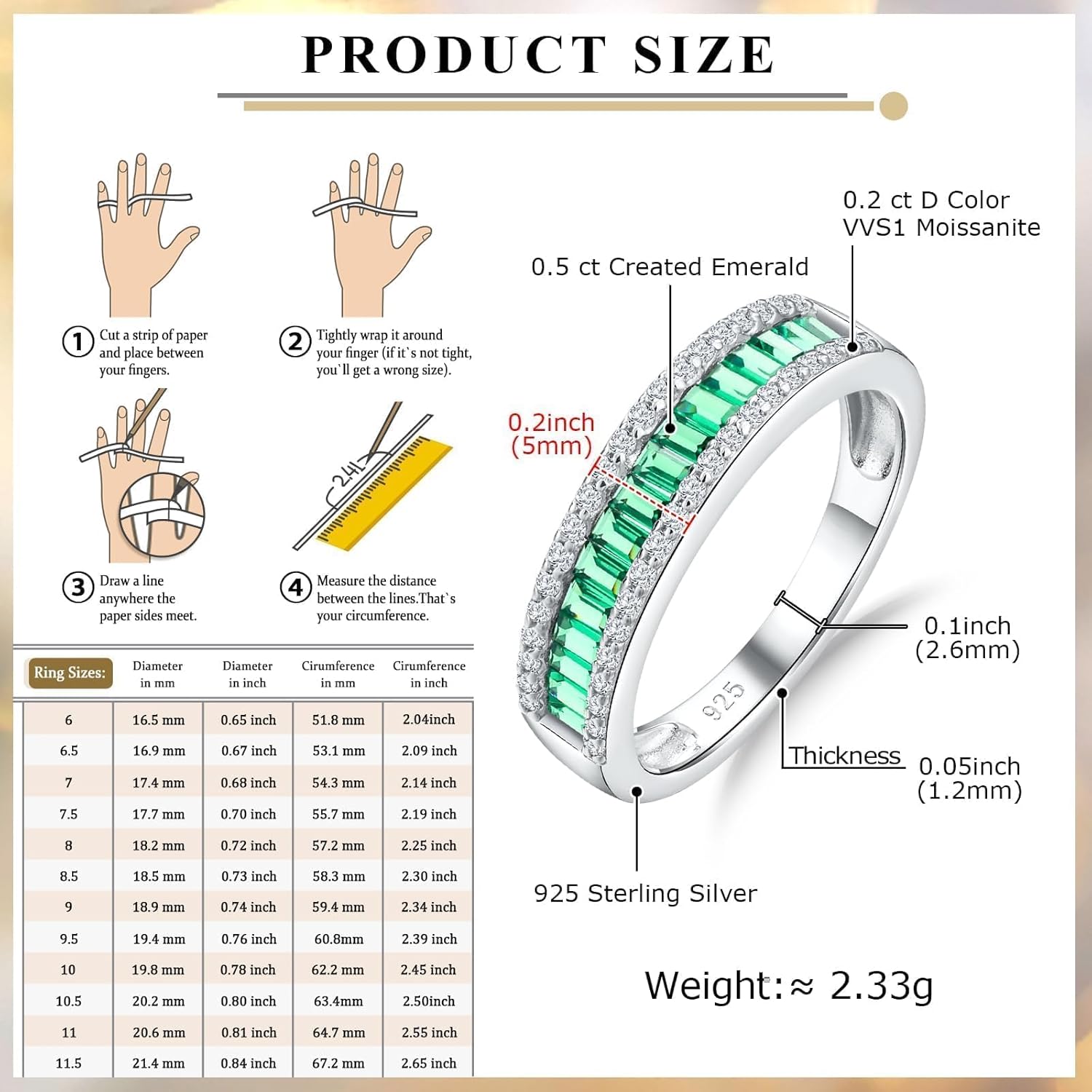 | Color | D. Moissanite & Emerald (0.7 Cttw) |