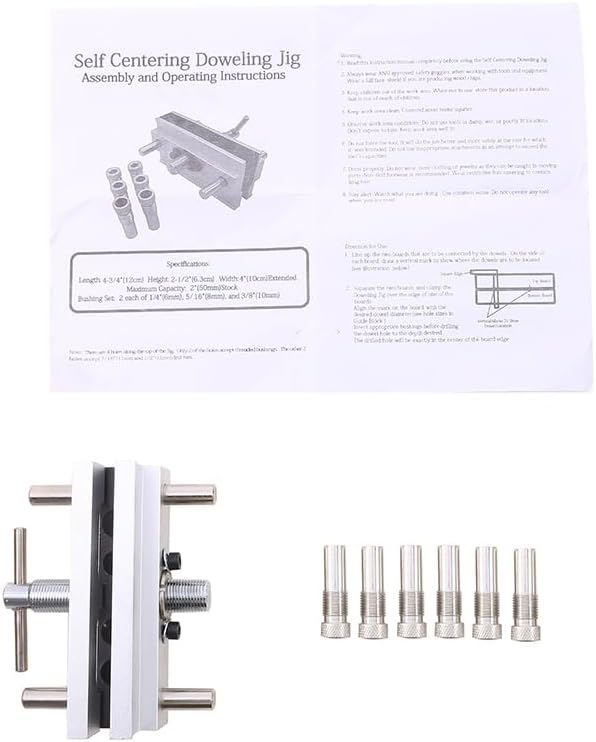 Specifications:Material: alloy steelSize: length 12cm, width 1-5.5cm, height 7cmNotes:1. Please understand there may be mild deviation exist.2. Due to the lighting and monitors, there are slight differences between the picture and the real item.Package Contents:1 * Doweling Jig