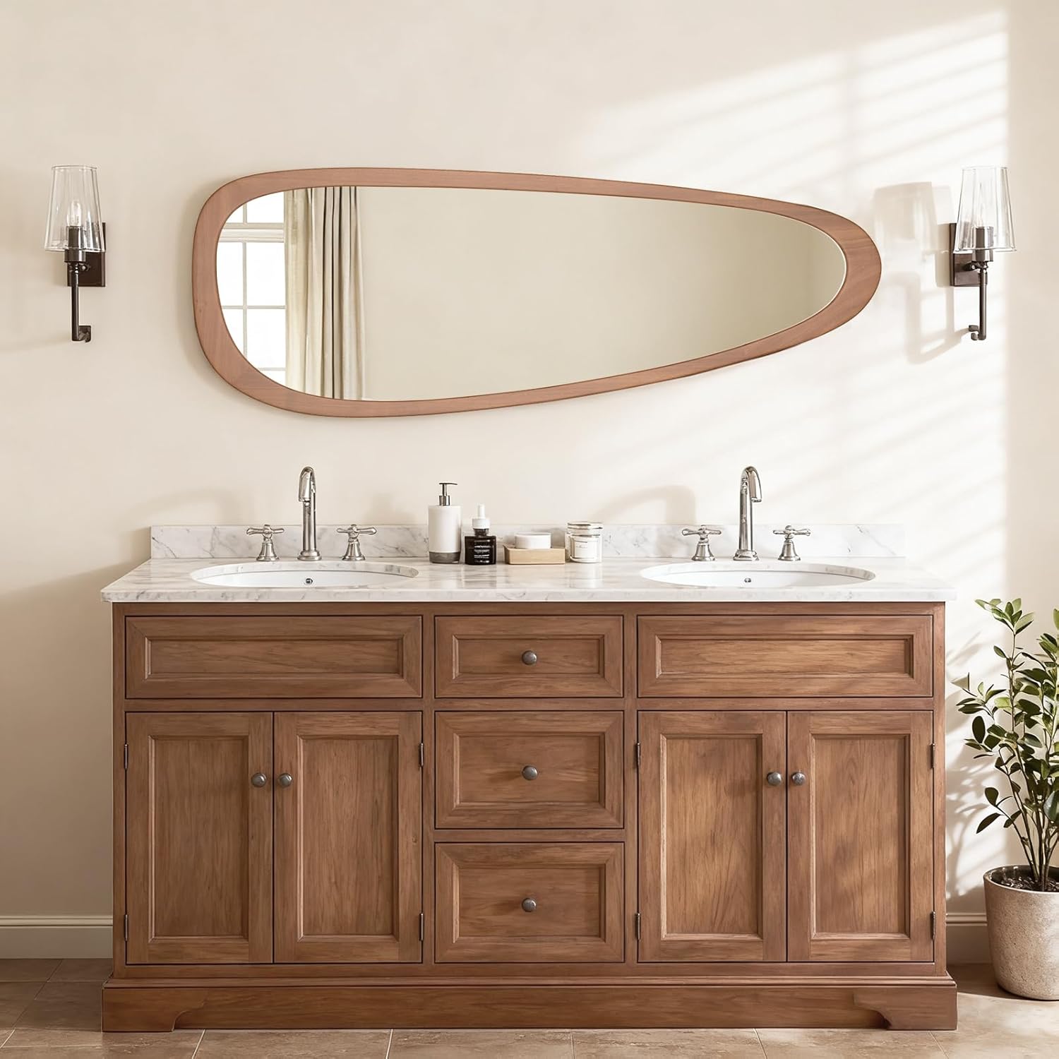 HOMECOOKIN Asymmetrical Mirror,22x60 Irregular Mirror Full Length, Boho Wall Mirrors Decorative for Bedroom Living Room Entryway Hall, Mid Century Modern Decor 60" H x 22" W
