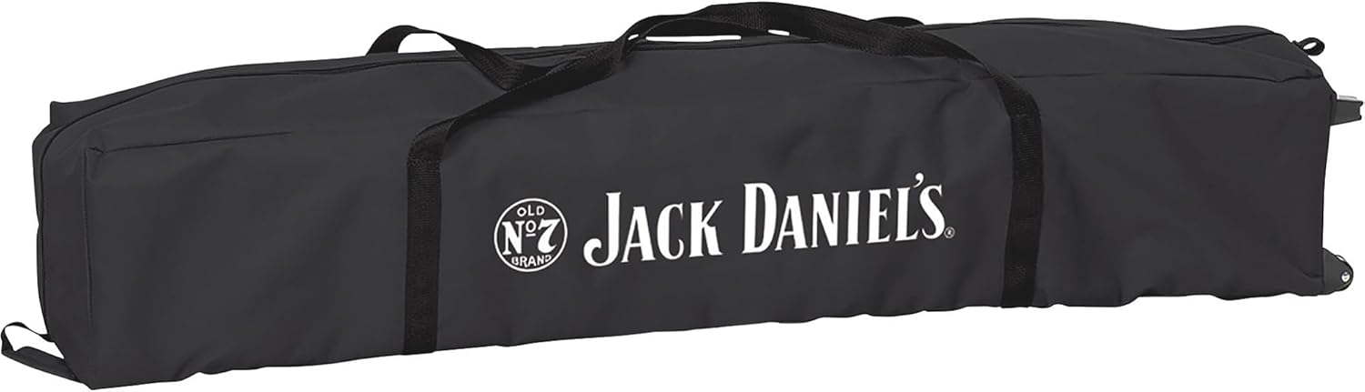 Relax and enjoy the outdoors in the shade! Jack Daniel's? Instant Canopy is great for backyard BBQ's, tailgating, car shows, or camping.? Includes a powder coated steel tube frame with 600 Denier polyester canopy. Folds for easy transport/storage in Wheeled Carry Bag. Includes Stake Kit. Assembled Dimensions: 9'10" x 9'10" x 8' 2.5" Wheeled carry bag: 48"L x 8"W x 8"D Weight: 28 lbs. Officially Licensed by Jack Daniels. Color: Black/White. JD-30062