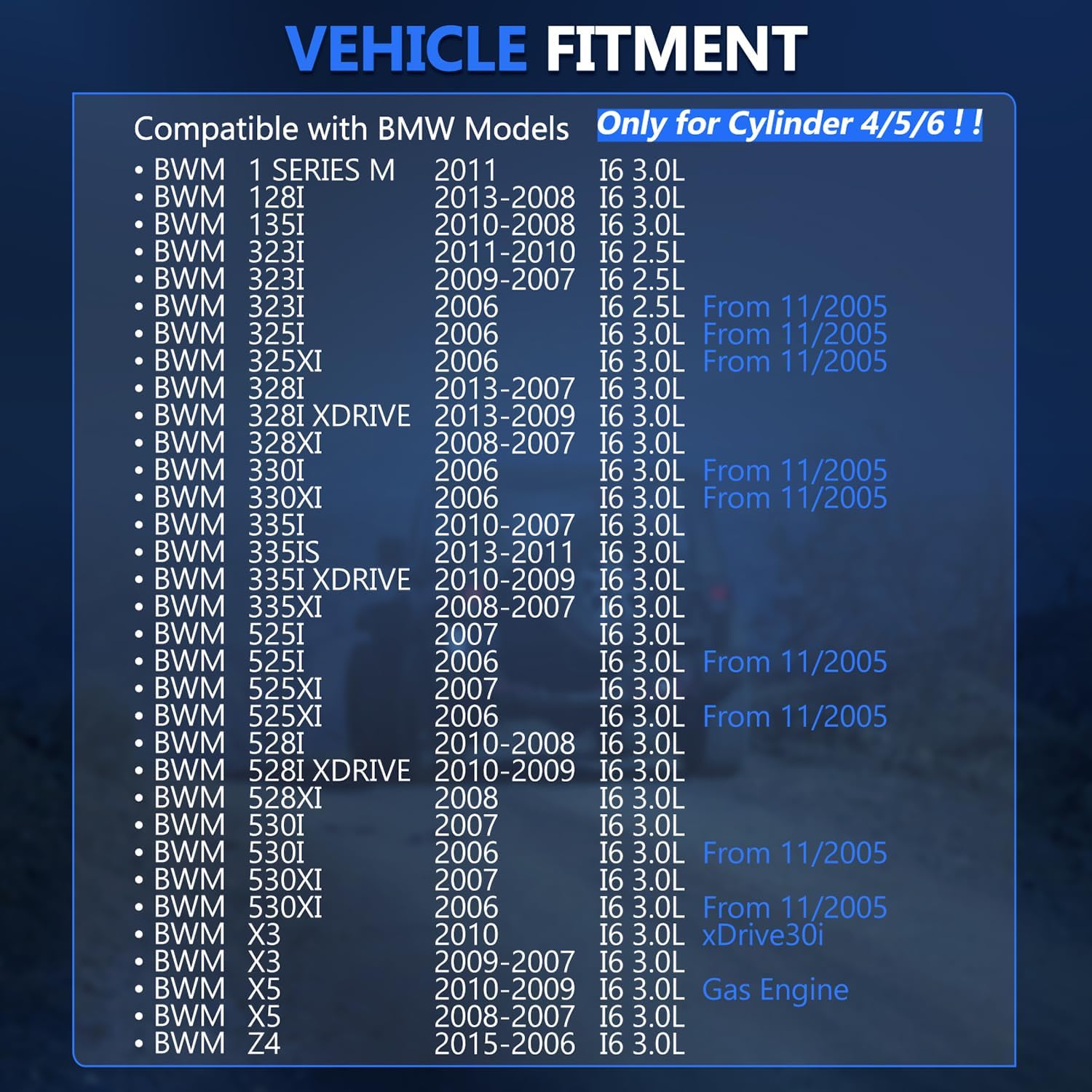 • 🔧【For BMW】Only for Cylinder 4/5/6 ! ! ! Oxygen Sensor Fit for BMW 2007 525I/525XI 3.0L, 2008-2010 528I 3.0L, 2009-2010 528I XDRIVE 3.0L, 2008 528XI 3.0L, 2007 530I/530XI 3.0L, 2007-2009 X3 3.0L, 2007-2008 X5 3.0L, 2009-2010 X5 3.0L for Gas Engine, 2006-2015 Z4 3.0L.