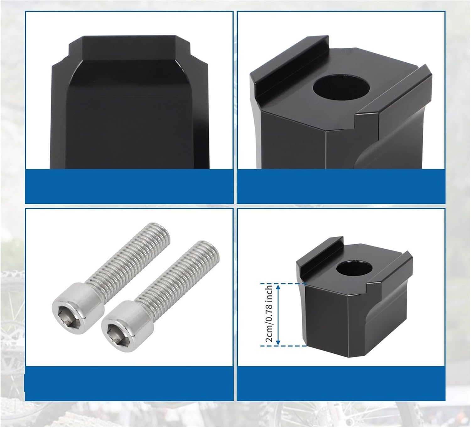 - Raises the bars 30mm- CNC Machined out of 6061 Aluminum- Black Anodized- Grade 12.9 Bolts IncludedFits:For Sur Ron For Ultra Bee 2023Includes A -1 set of 20mm Bar Risers and BoltsB -1 set of 30mm Bar Risers and BoltsMaterial : 6061 AluminumA : Risers 20 mmB : Risers 30 mmWe provide satisfactory products and services. Please feel free to contact us if you have any questions.
