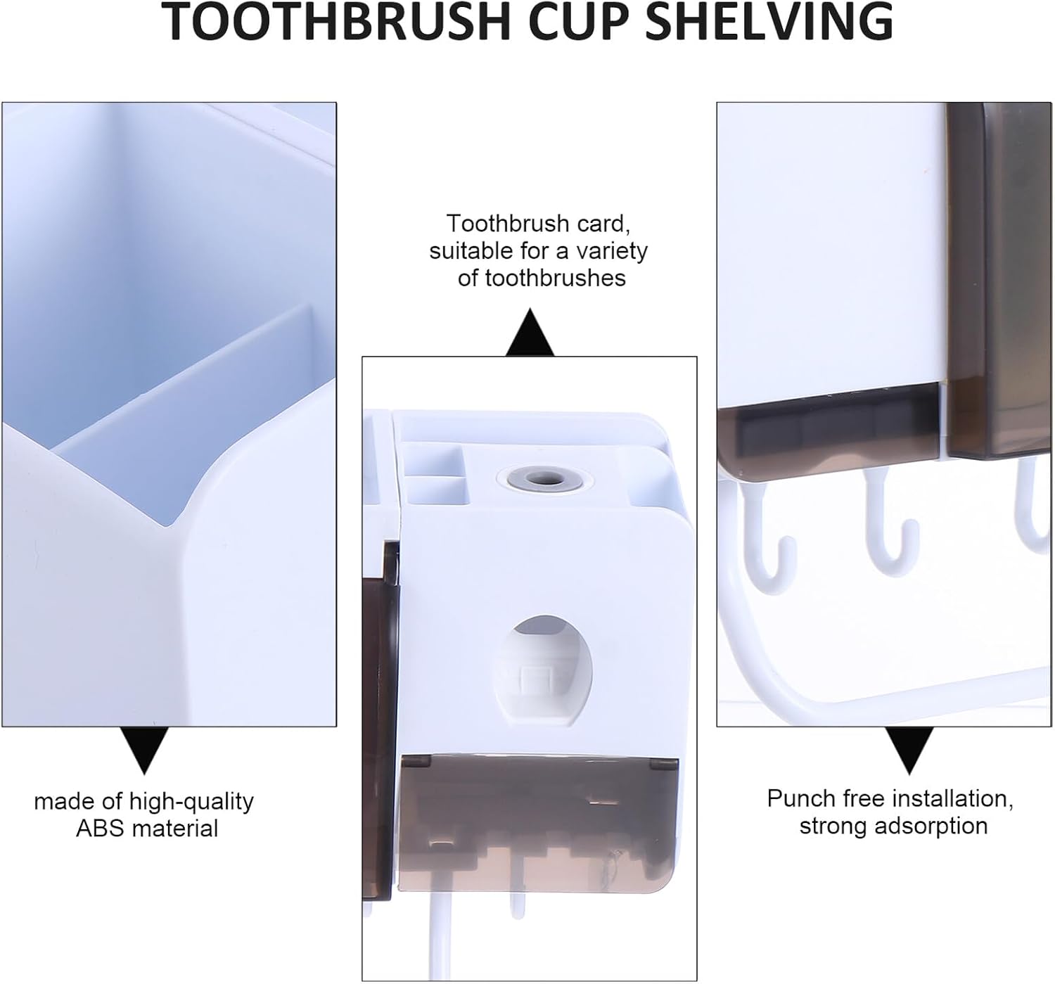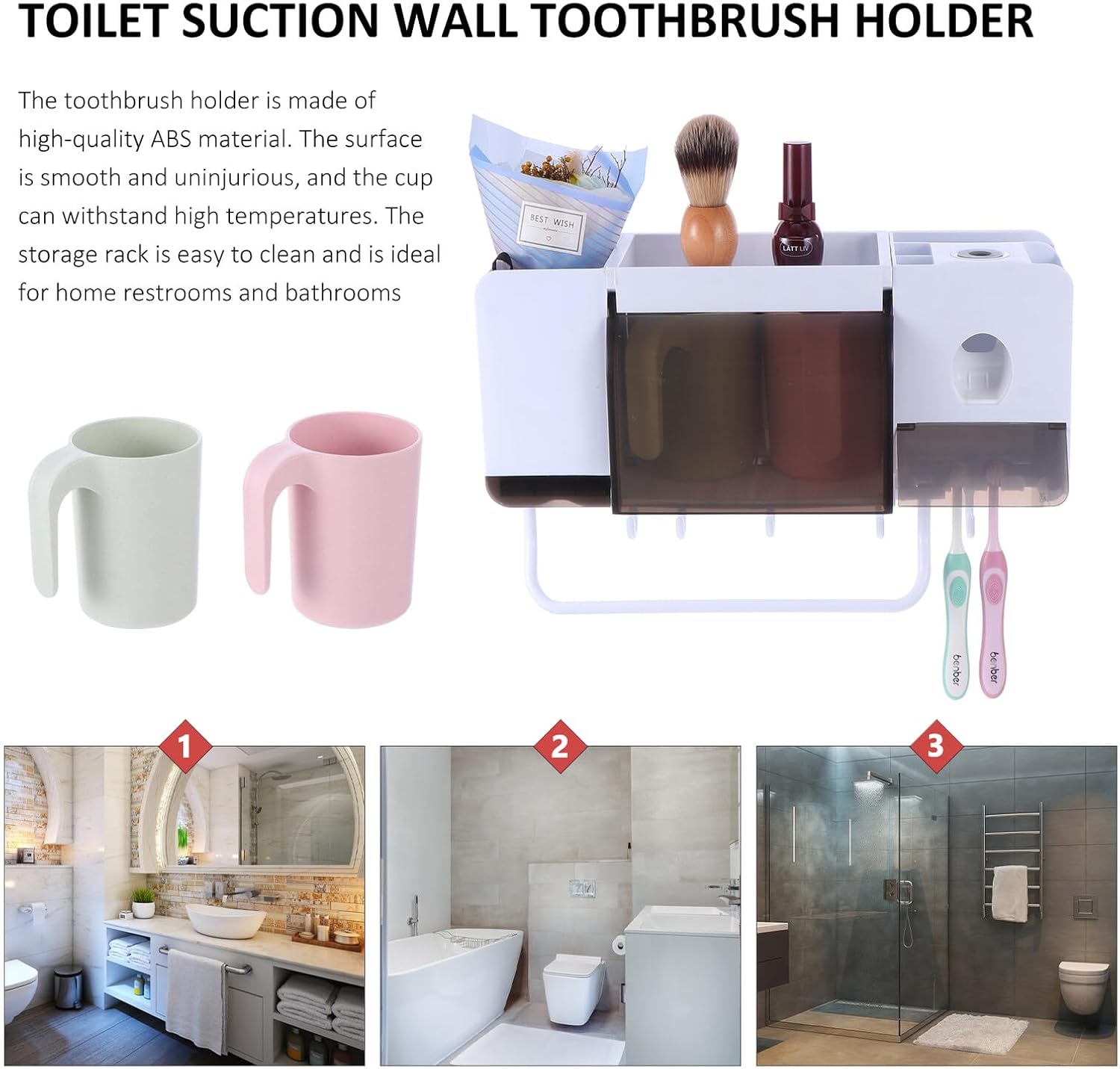 Package Include 1 x storage rack Features -Product Info:Toothbrush holder storage set - Material: PP and Fiber. - Color: Assorted Color. - Size: About 33.00X20.50X9.80cm/12.97X8.06X3.85inch. - Nail free wall-mounted design, to walls Storage Rack. - This rack is multi-purpose. It can hold toothbrush, cup, ointment and other small items, such as hair brush and facial Bathroom Rack. - Leaving no mark after removing the rack , suitable for household and hotel bathroom Toothbrush Suspension Rack. - High temperature resistance, safe and no Toothbrush Holder. - Modern style, fit for sorts of bathroom decor style Suspension Rack.Goods DescriptionToothpaste Holder This multifunctional washroom rack is make of environmentally friendly material.Bathroom Rack The dispenser squeezes the perfect amount each time, very practical.Toothbrush Rack No smell, no , safe and for long-term use.Toothpaste Toothbrush Storage Rack This storage holder come with toothpaste squeezer design