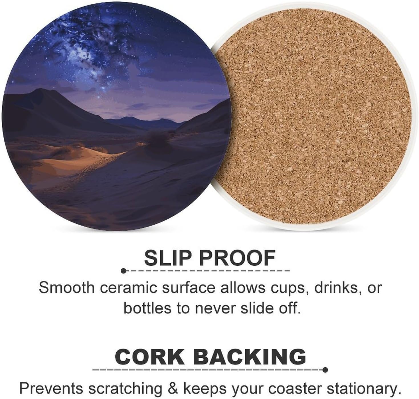 Transform your everyday drinkware experience with our Personality Round Mug Mat set, designed to blend functionality with eye-catching style. Whether you're sipping morning coffee, afternoon tea, or a relaxing evening drink, these Drink Coasters for Drinks offer the perfect balance of protection and aesthetics. The ceramic surface handles hot and cold beverages alike, while the cork backing ensures your favorite tables and countertops stay free from scratches, rings, and moisture. Available in 4PCS or 6PCS packs, these coasters are tailored to fit your daily use, whether for personal use or entertaining guests.Say goodbye to messy spills and slippery cups with our Waterproof Coasters and Anti-slip Drink Cup Mat combination. The smooth ceramic top is not only easy to wipe clean but also resists water absorption, ensuring spills don’t leave lasting marks. At 4.1 inches in diameter, each Round Ceramic Drink Coaster is sized to fit most standard mugs, glasses, and cups, making it a versatile addition to any home or office. Whether you're hosting a casual gathering or setting up a cozy workspace, these coasters keep your surfaces protected while adding a subtle, stylish touch to your decor.Elevate your space with our Fashion Coasters that double as charming coffee table decor. These Cute Drink Coasters feature a sleek round design that complements any interior style,Perfect for your kitchen, living room, bedroom, office, or bar, they make a thoughtful gift for friends, family, or colleagues who appreciate both practicality and style. Don’t settle for basic coasters—upgrade to our Heat Insulation Round Cup Mat set and enjoy a cleaner, more organized, and aesthetically pleasing environment with every sip.