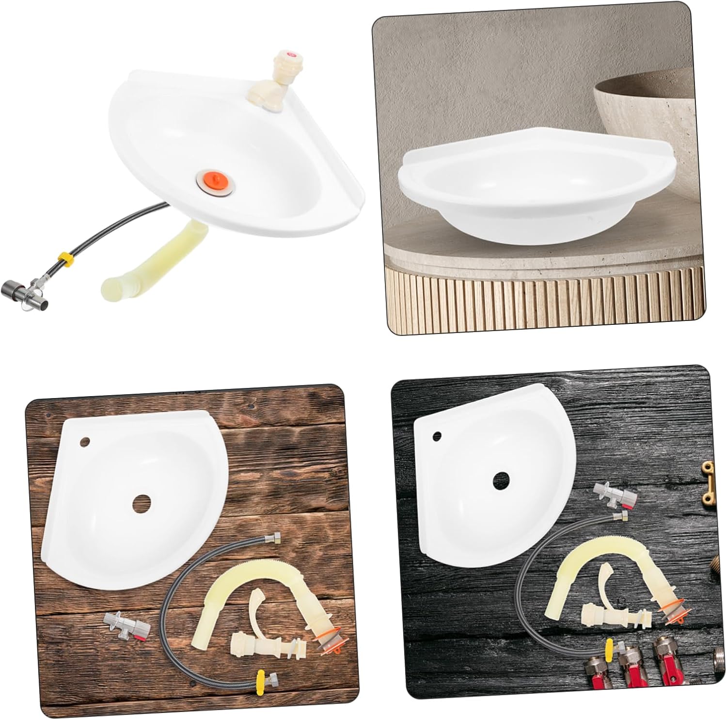 Package List 1 x Triangular basin Features -Color:Assorted Color bathroom sink -Size:8.70X2.80X1.90cm/3.42X1.10X0.75in wall-mounted washing basin frame -Size:75.00X4.50X4.50cm/29.48X1.77X1.77in bathroom basin sink -Size:60.00X1.50X1.50cm/23.58X0.59X0.59in wall mount bathroom sink -Space saving shape: the unique triangular fan shaped design maximizes space efficiency, making it ideal for compact areas sink replacement kit -Easy installation: the washbasin comes with simple installation instructions, allowing for quick and setup small corner sink -Material:Plastic, wall restroom corner sink -Multifunctional design: this plastic washbasin can be wall mounted, corner mounted, or hung, making it adaptable to various space requirements wall mounted bathroom sink -Size:14.00X13.30X4.00cm/5.50X5.23X1.57in bathroom sink wall mount - material: made from plastic, this washbasin is built to last and easy to clean, ensuring long term use wall bathroom basin sink -Size:31.00X31.00X11.00cm/12.18X12.18X4.32in bottle basin for sink -Versatile use: its elegant design makes it suitable for homes, offices, hotels, and other settings, adding of sophistication plastic utility sinkGoods Informationgarage utility sinks Crafted from plastic, this wall-mounted corner washbasin features a sleek triangular design that maximizes space efficiency.wall-mounted utility sink Its modern aesthetic complements various bathroom styles, while the lightweight material ensures easy installation.wall sink basin Ideal for compact areas, it provides a for handwashing and daily routines