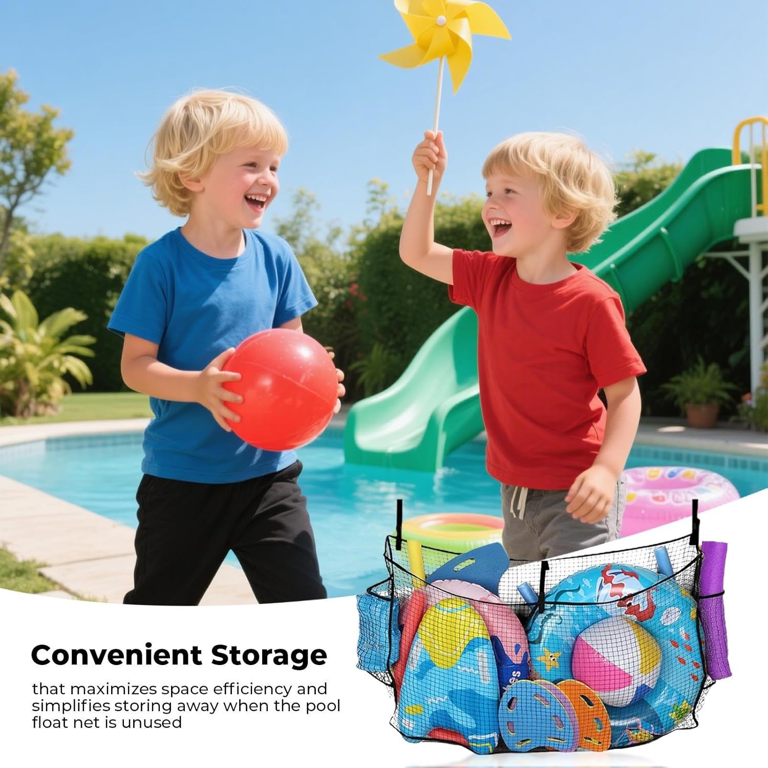 The pool toy mesh is designed to simplify poolside organization while ensuring durability and comfort. With anti-sinking support, this mesh keeps its shape even when fully loaded, offering a reliable solution for storing inflatable water accessories. With large capacity, it holds footballs, basketballs, stuffed animals and more, making it ideal for families and group activities. Breathable mesh design allows for quick drying and prevents musty odors, improving usability. Perfect for poolside or beach outings, this mesh net organizer keeps toys and accessories neatly stored and easy to access. Thoughtful construction ensures long-lasting performance for outdoor fun. Specification: Product Name: Pool Storage Material: PE Colour: black. Product weight: about 400g Product size: about 150 x 85 x 3 0.1 cm/59.06 x 33.46 x 11.81 inches. Packing list: 1 x swimming pool storage. Note: Due to different lighting and screen settings, the colour of the item may be slightly different from the picture. Due to different manual measurements, please allow 1-2cm size difference.