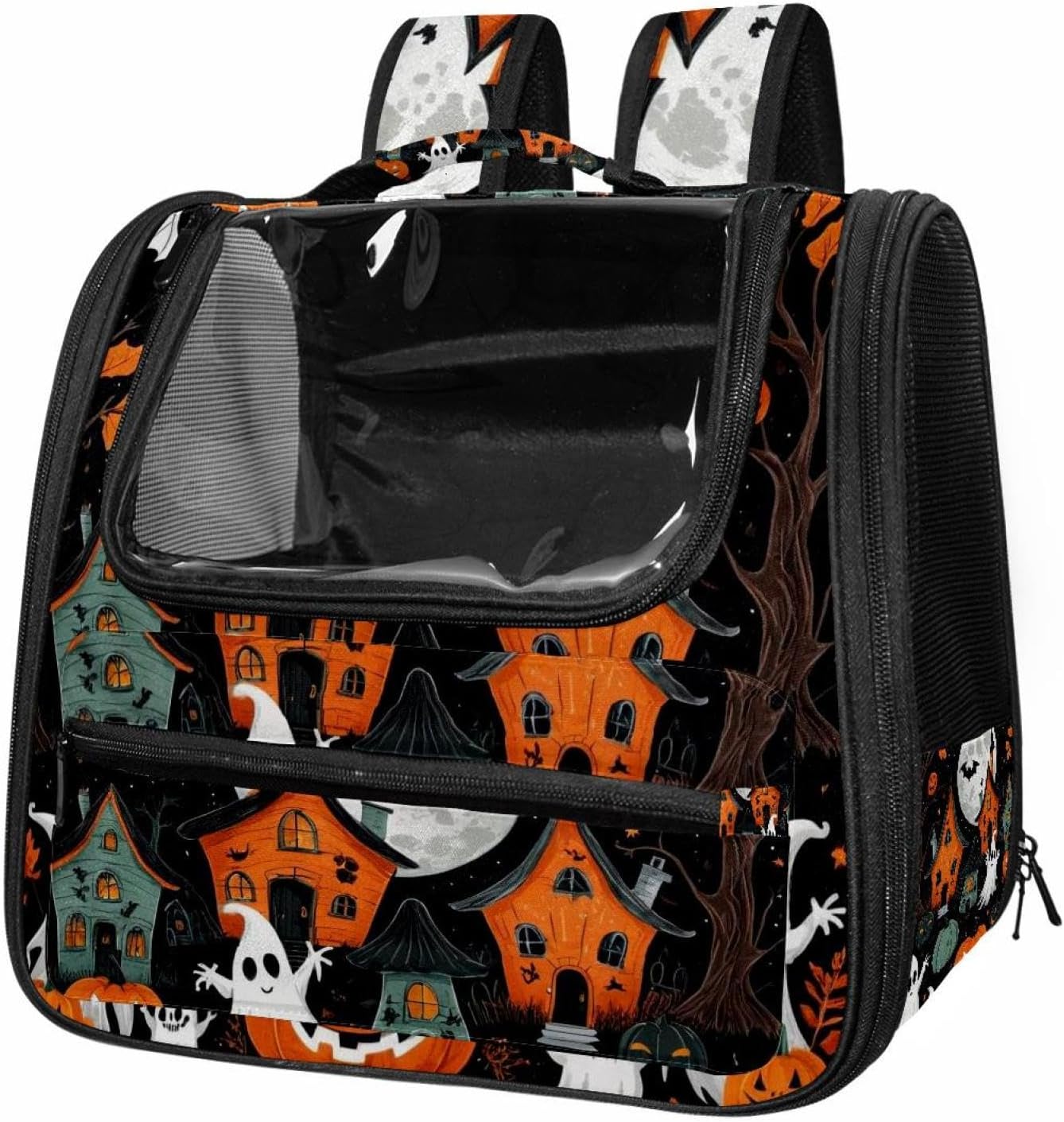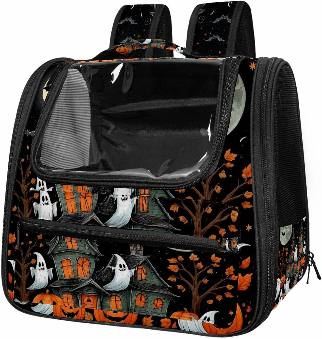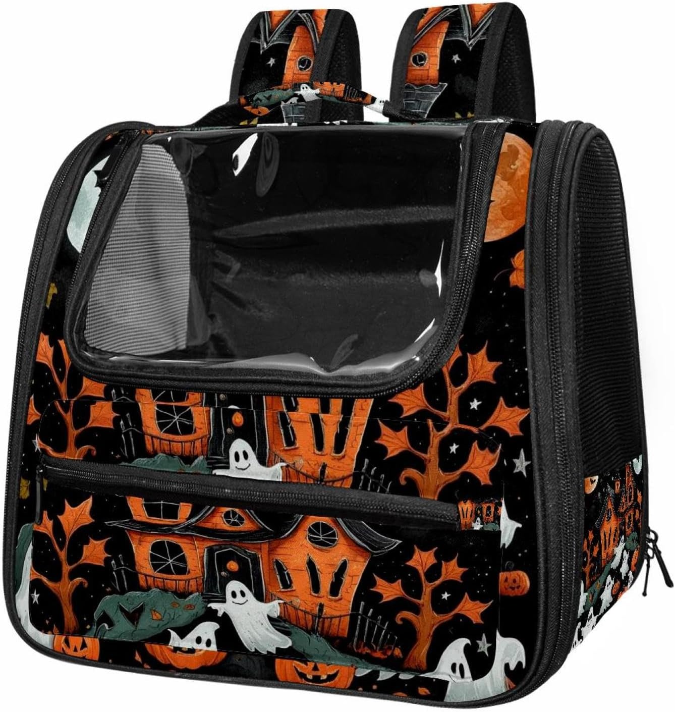Well made: Cat Backpack Carrier is made from 900D oxford fabric, pp webbing, velvet, nylon, which is very sturdy, environmentally friendly and breathable. Not easily scratched by pet’s claws, pet backpack carrier is SAFETY & ANTI-SCRATCH. The back padding will give you a comfortable and breathable experience. Ventilated Backpack: With a breathable window in the front, this pet backpack allows cats to enjoy the sun without feeling stuffy. There are two side pockets and one big front pocket, and you can take foods or toy for your kitten pet. It is big enough for cat to turn around, and there are side pockets and hook holes, you will enjoy the greatest convenience when taking your cat out. Perfect size: Cat carrier is 15.75x9.84x13.78in/40x25x35cm. Fits most small/medium sized cat, dog, and pet. Quality fleece bed provide a comfortable place for your pet. Lightweight and easy to carry to all places. Built-in harnesses keep your naughty friends from escaping. Removable cosy mat for easier cleaning and let your pet enjoy it inside. Easy to carry: The adjustable shoulder strap of pet carrier bag help you hands-free carrying and makes it the most safe and convenient pet carrier bag for your travel. Seat belt design provide pets with safety protection throughout the trip. Pad protection keep your pets comfortable during travel. Unique Design: Innovative inside graphic design gives you a stereoscopic 3D visual experience. You also send us the photos you interest to make your unique dog or cat carrier. Pet bag is also a amazing gift for pet lover.