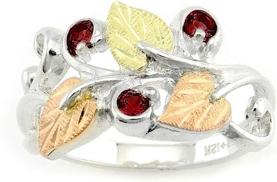 Legend has it: Good Luck Comes to All Who Wear Black Hills Gold JewelrySynthetic Garnets are used for January’s birthstones and the zodiac sign for Aquarius; also the second and sixth wedding anniversaries. Whether you treat yourself or gift this to someone special, it is a thoughtful, unique keepsake. Quickly becoming her favorite go-to fashion accessory--perfect for any outfit. It contains no nickel and is gentle on sensitive skin.The original Black Hills Gold proudly made in America since 1878: the distinctive grape and leaf design in three colors make Black Hills Gold a unique American art form. In an age of robotic manufacturing, each piece of Black Hills Gold continues to be crafted by highly skilled and talented artisans. According to legend, French goldsmith, Henri LeBeau got lost in the Black Hills of South Dakota in the 1870s gold rush. He fell asleep believing he was dying. In a dream, he saw a mountain stream with grapevines growing on its banks. Upon awakening, he walked over a rise to see the stream and grapevines of his dream. In gratitude, he created jewelry in the shapes of grape clusters and leaves fashioned in rose, green and yellow gold.Upon ordering, the jewelers in South Dakota start crafting your earrings. From the casting to the hand-placed, hand-engraved leaves, it is one of the most labor intensive styles of jewelry. Today, a series of up to 40 different steps are necessary to capture the same dramatic detail in the traditional and contemporary Black Hills Gold designs.The rising price of gold and silver makes this, quite simply, a great investment.Made in the USA.Footnotes: Signature for Safe DeliveryMade to Order Especially for You, Sent in Approx 10-15 Business DaysImage Enlarged for Detail Check Measurements to be Sure of SizeThank You for Your Consideration, We Appreciate You. Elegance is Always Fashionable... Never Trendy.