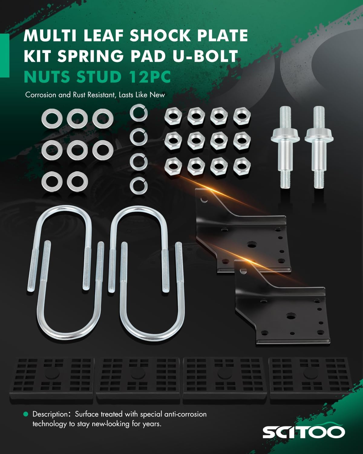 | Item Type Name | SCITOO Leaf Spring Kit Multi Leaf Shock Plate Kit Spring Pad U-Bolt Nuts Stud 12pc Compatible With Camaro Firebird Nova 1968-1972 |