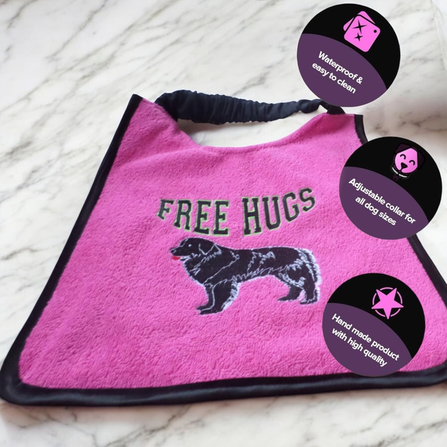 | Material Type | embroidery, waterproof, personalized, drool bib, big dog, elastic comfortable neck strap, handmade |